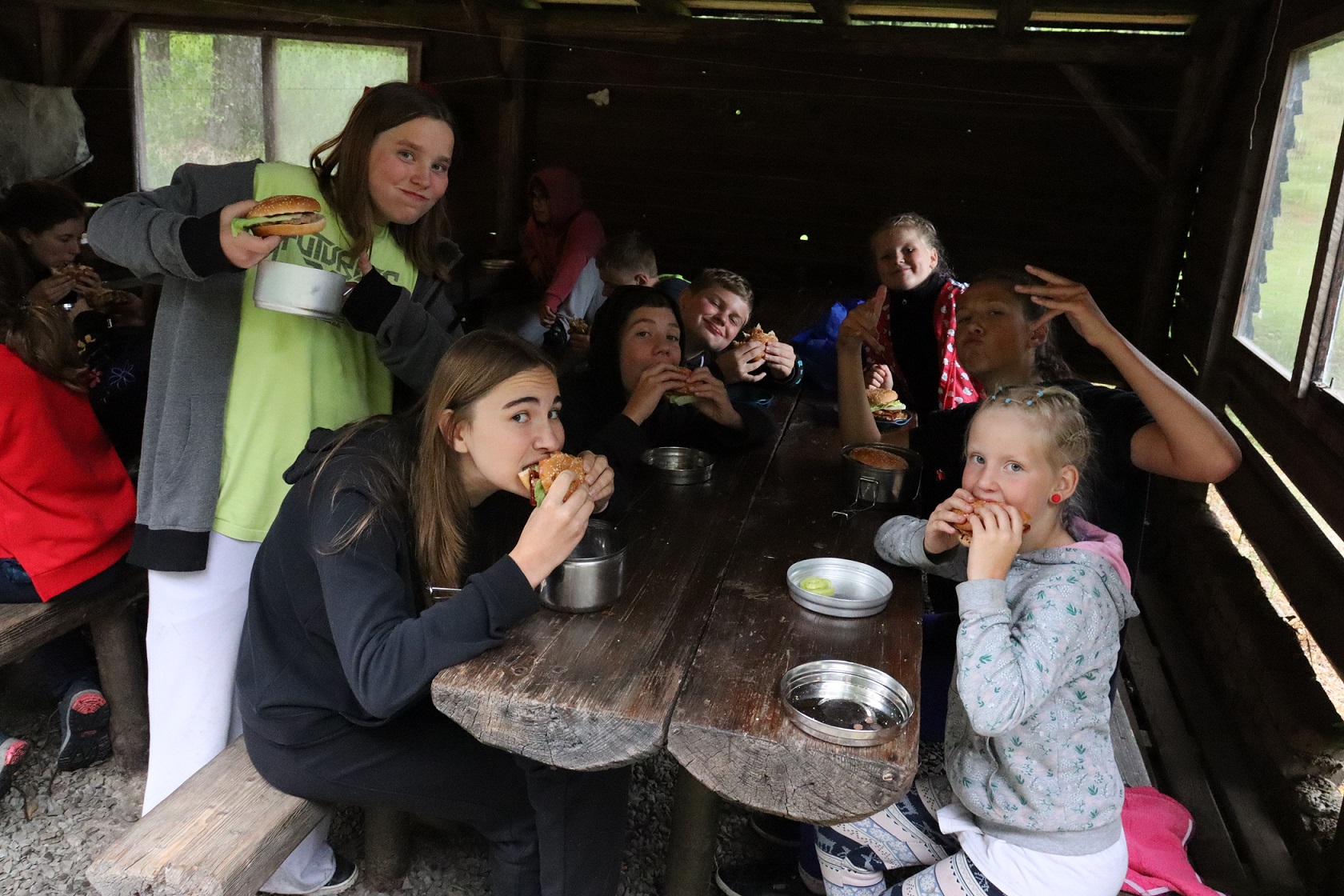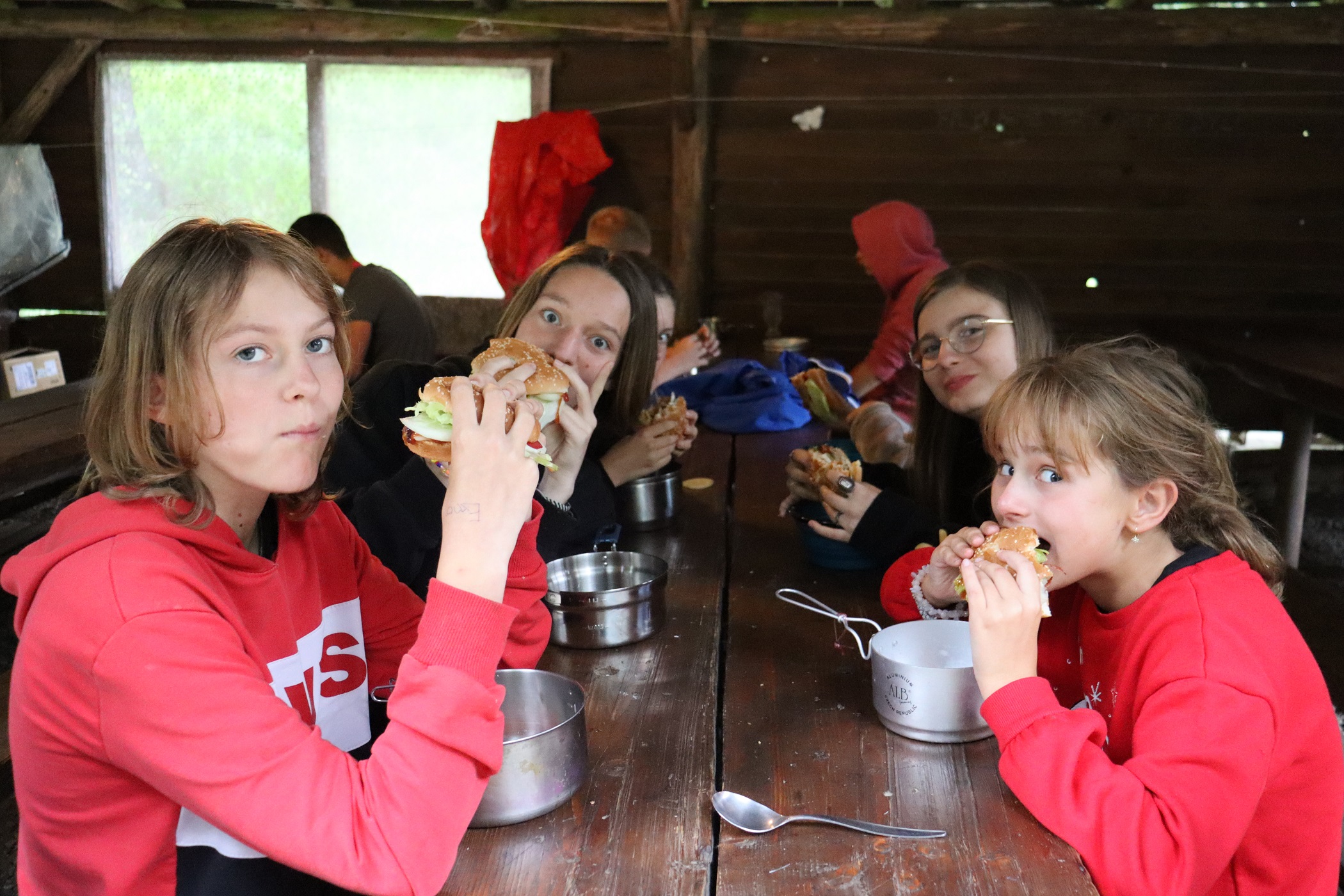Večeře: hamburger, zelenina