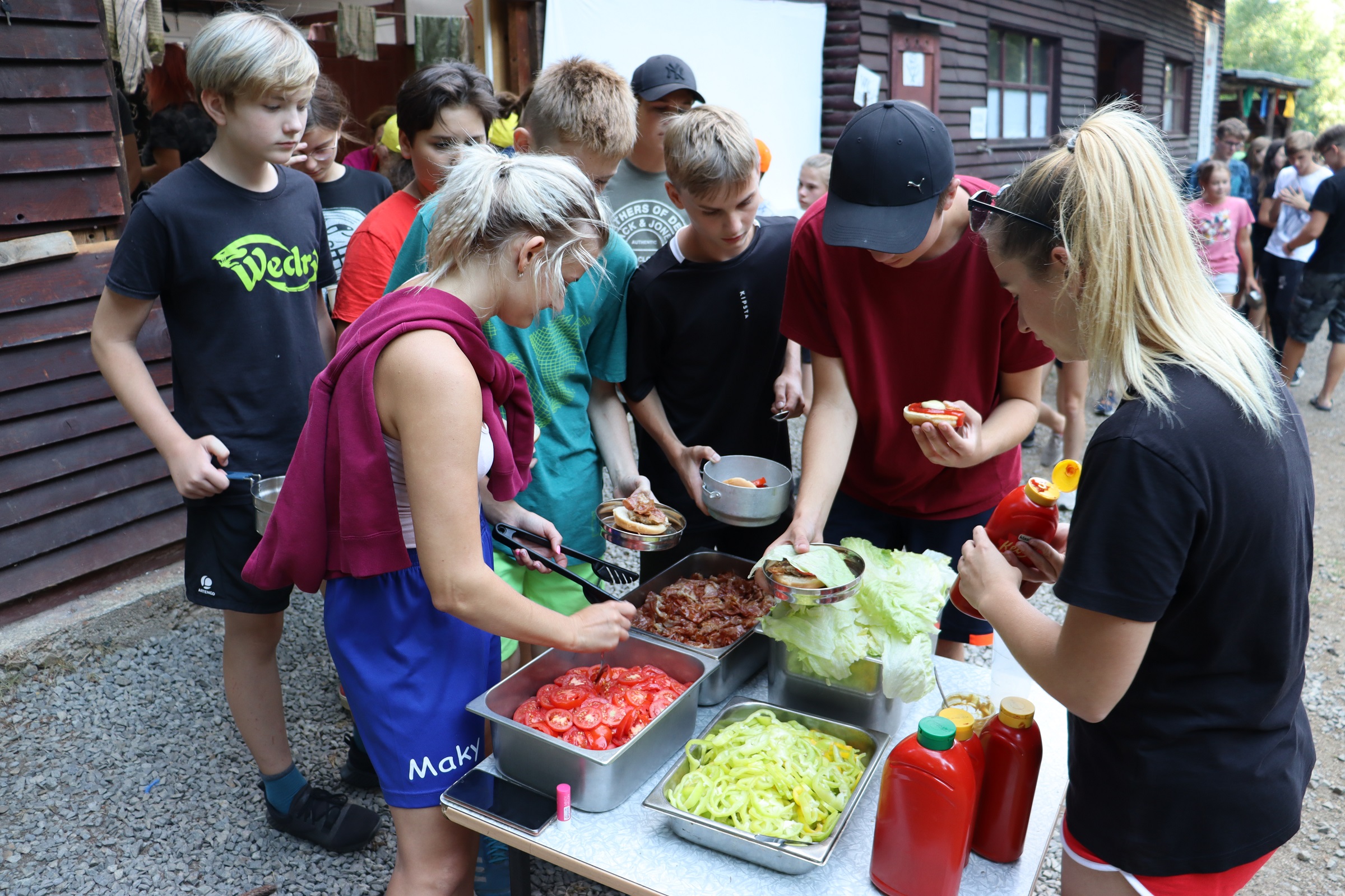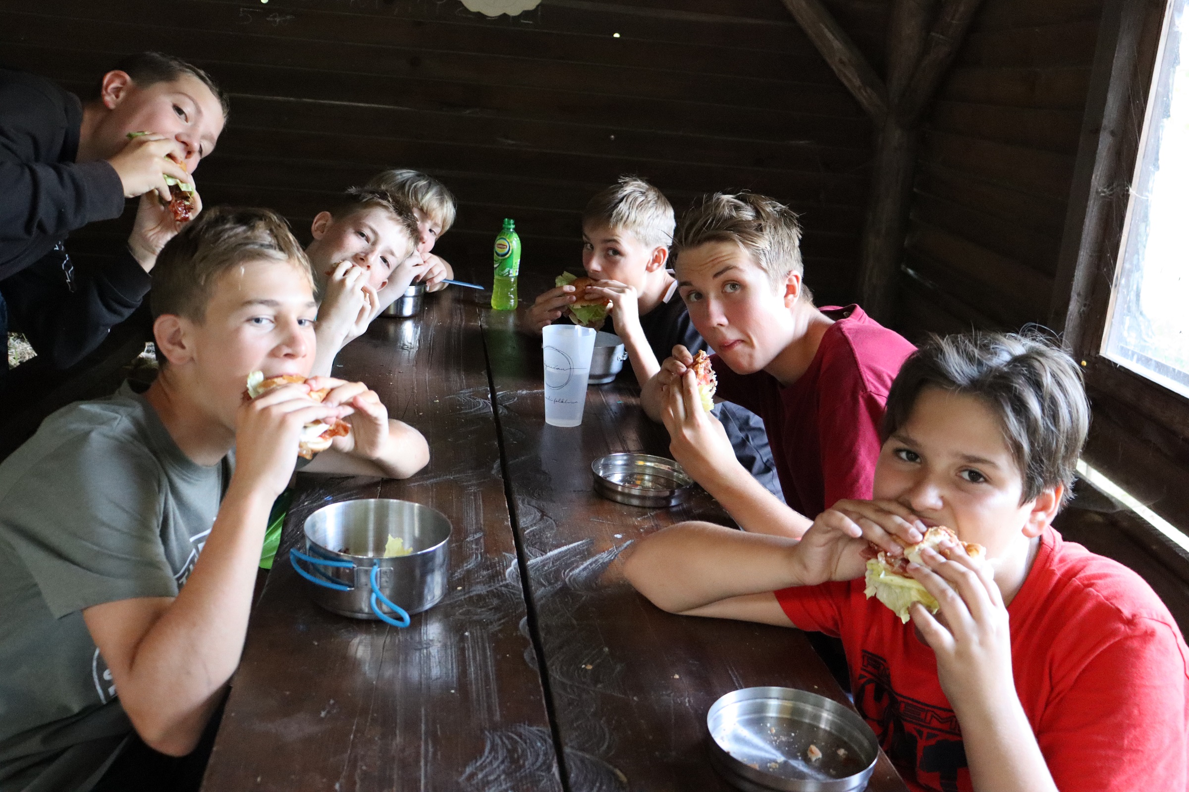 Snídaně: vaječná pomazánka, rohlík, zelenina, čaj