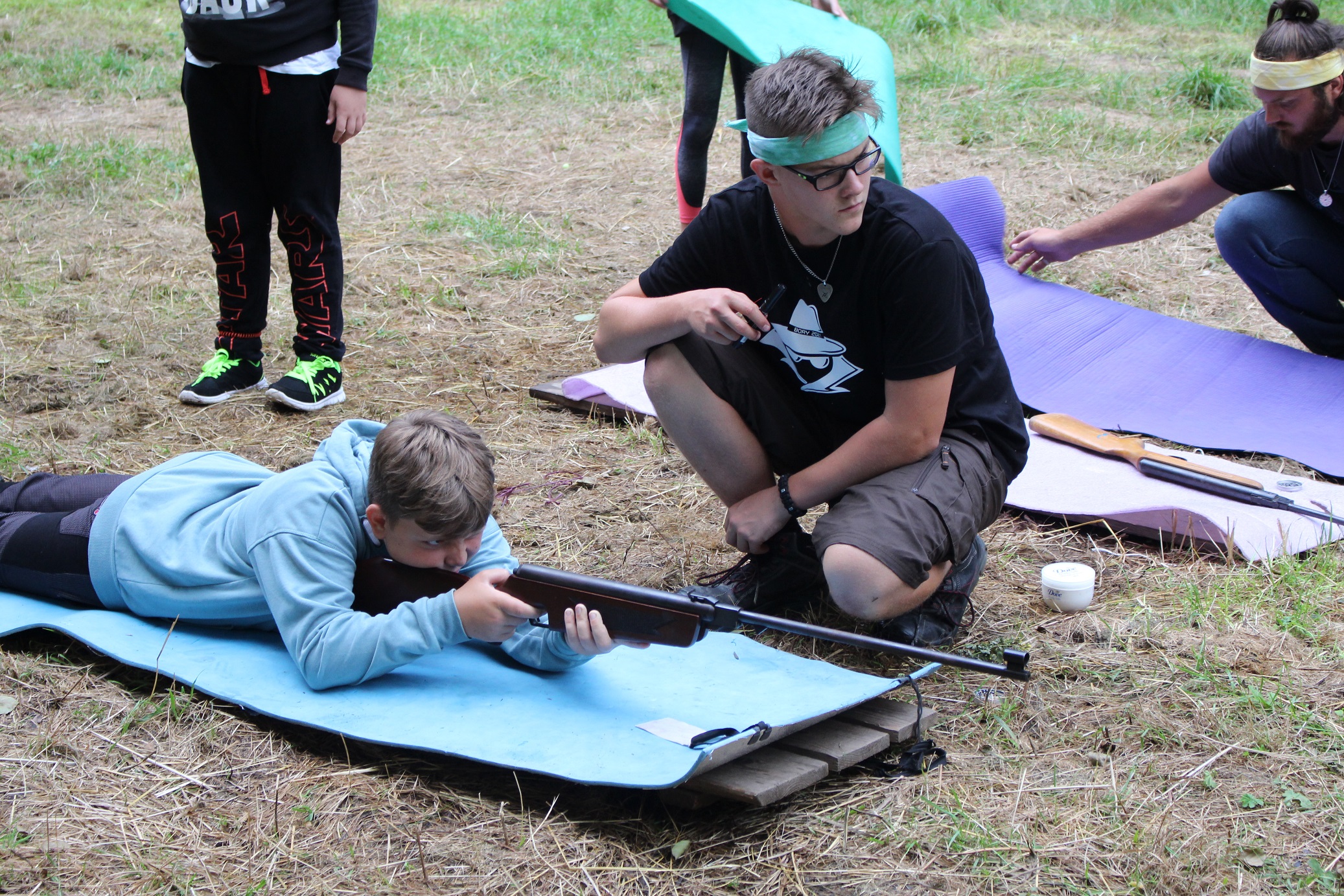Hned po večeři jsme se s odhodláním pustili do výcviku. Naše plné nasazení bylo bohužel přerušeno nepřízní počasí. Pokračovat ale budeme hned ráno. Dobrou noc.