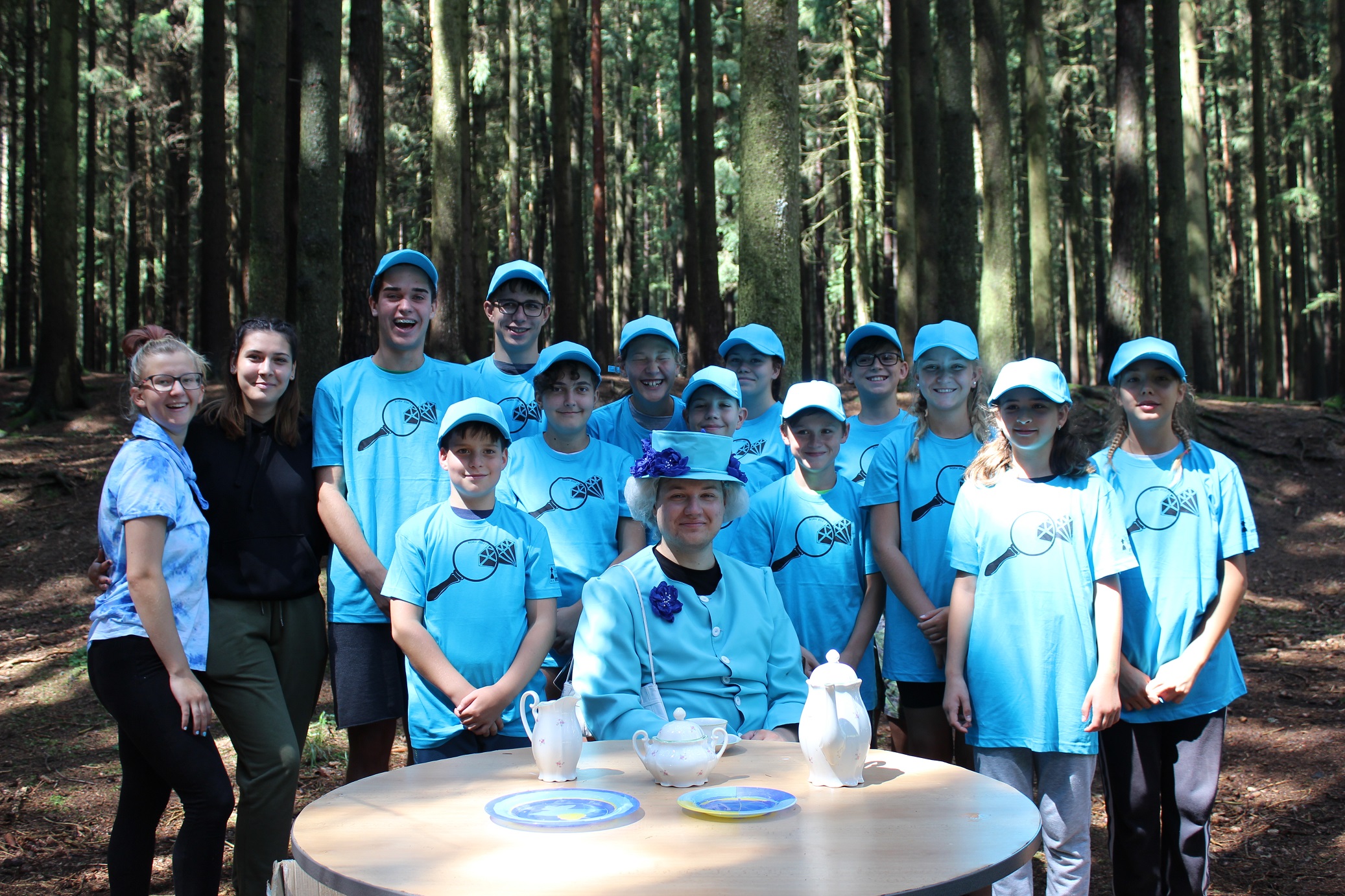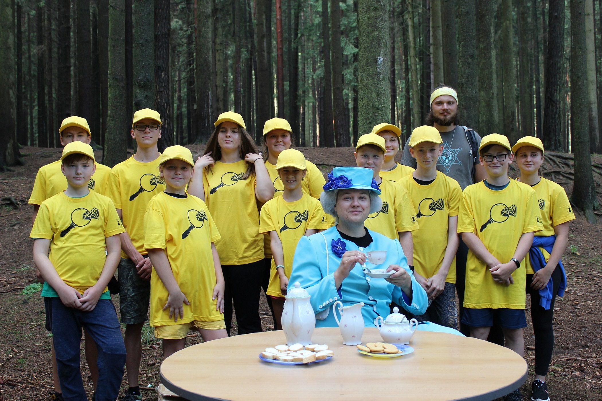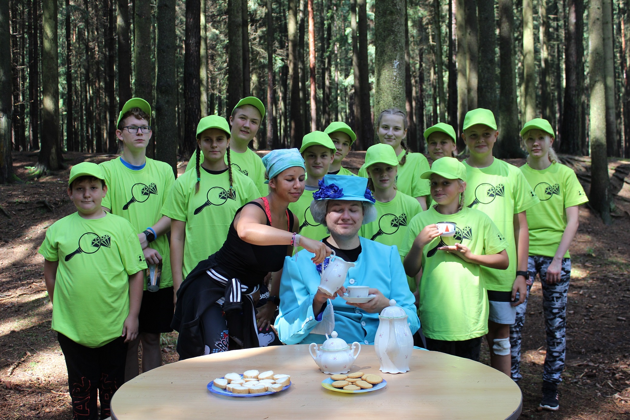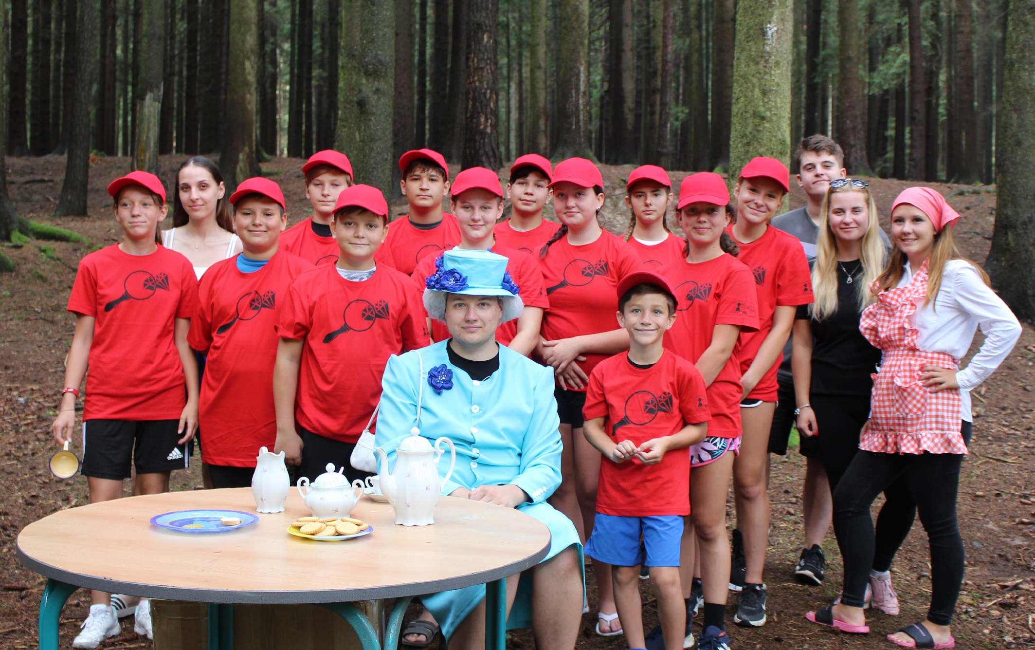 Ráno přišla nejlepší zpráva celého našeho pobytu: Čeká nás audience u královny Alžběty II. Než jsme se k ní ale nedostali, museli jsme projít kontrolou přes nejrůznější vojenské hodnosti: vojín, seržant, nadporučík, major, brigádní generál, armádní generál, šéf MI5, a pak už na nás čekala samotná královna Alžběta II. Pozvala nás na čaj, požádala o pomoc při pátrání po ukradených diamantech a vyfotila se s námi. Byla to pro nás velká čest. Odjela ve svém kočáře, taženým krásnými kladrubáky.
