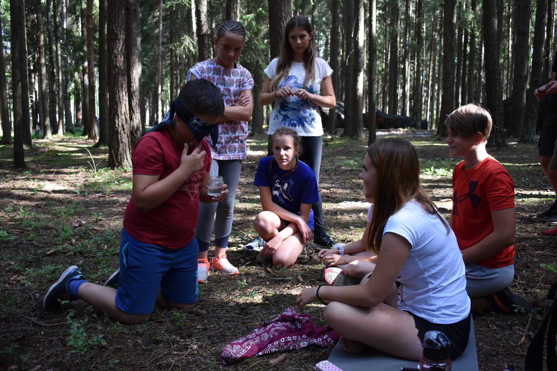 Další zastávkou na naší pouti byla planeta smyslů. Dopoledne jsme byli okradeni o zrak, ale splněním úkolů se vše naštěstí napravilo. Odpoledne jsme využili další smysly a to konkrétně čich, chuť a hmat a díky nim získali ingredience, ze kterých jsme si sami umíchali těsto na buchtu, kterou jsme si posléze s chutí snědli.