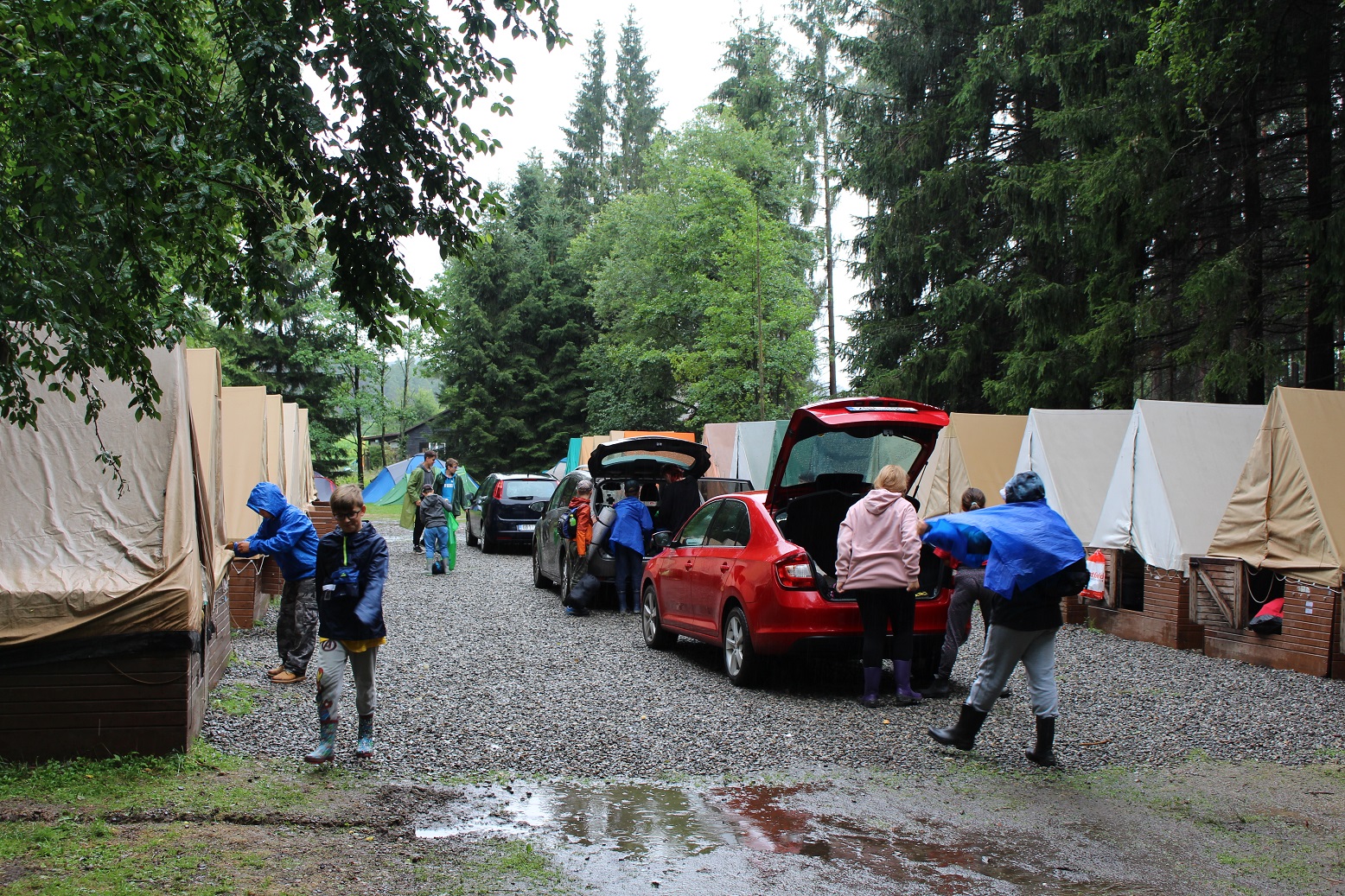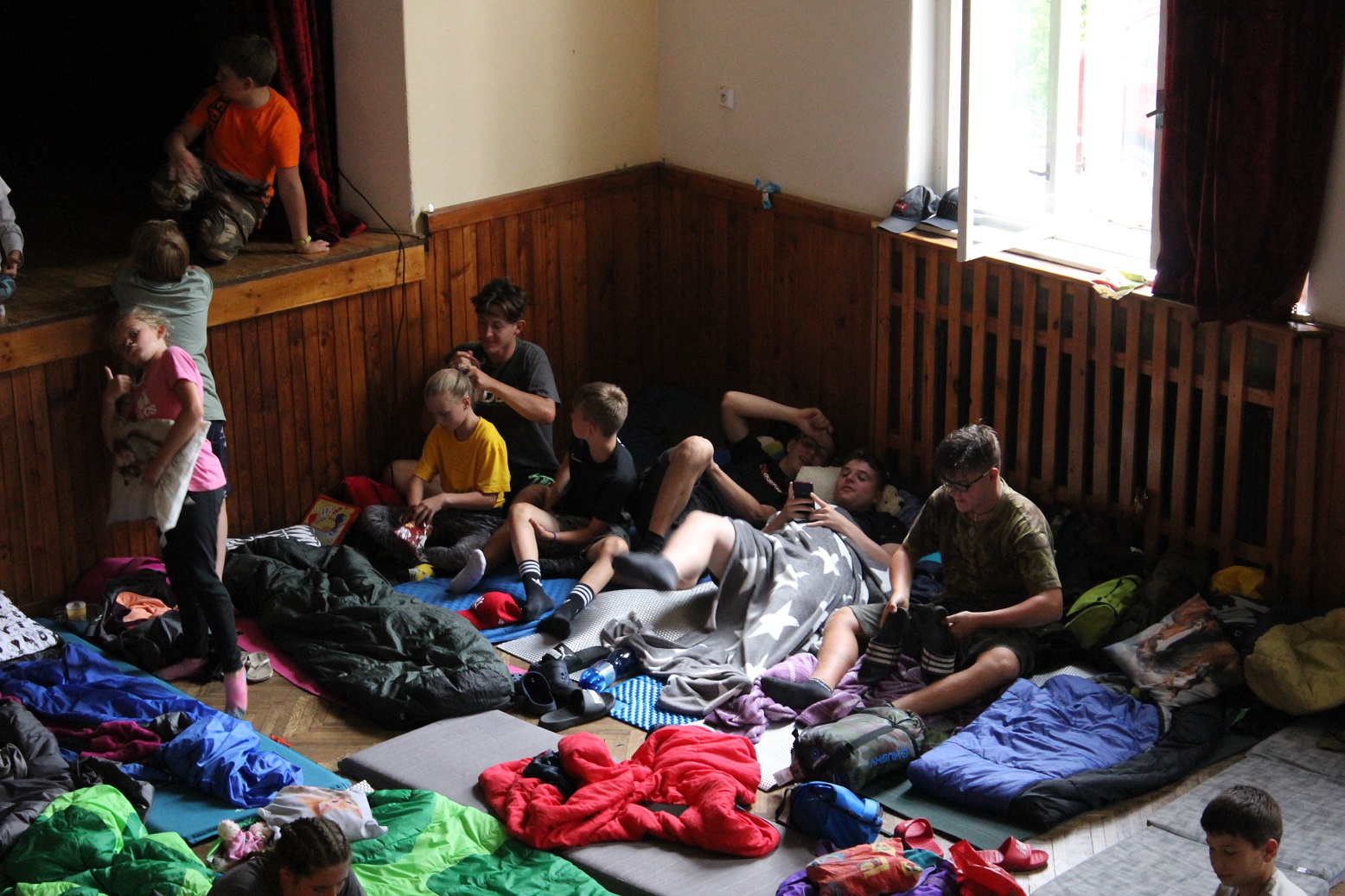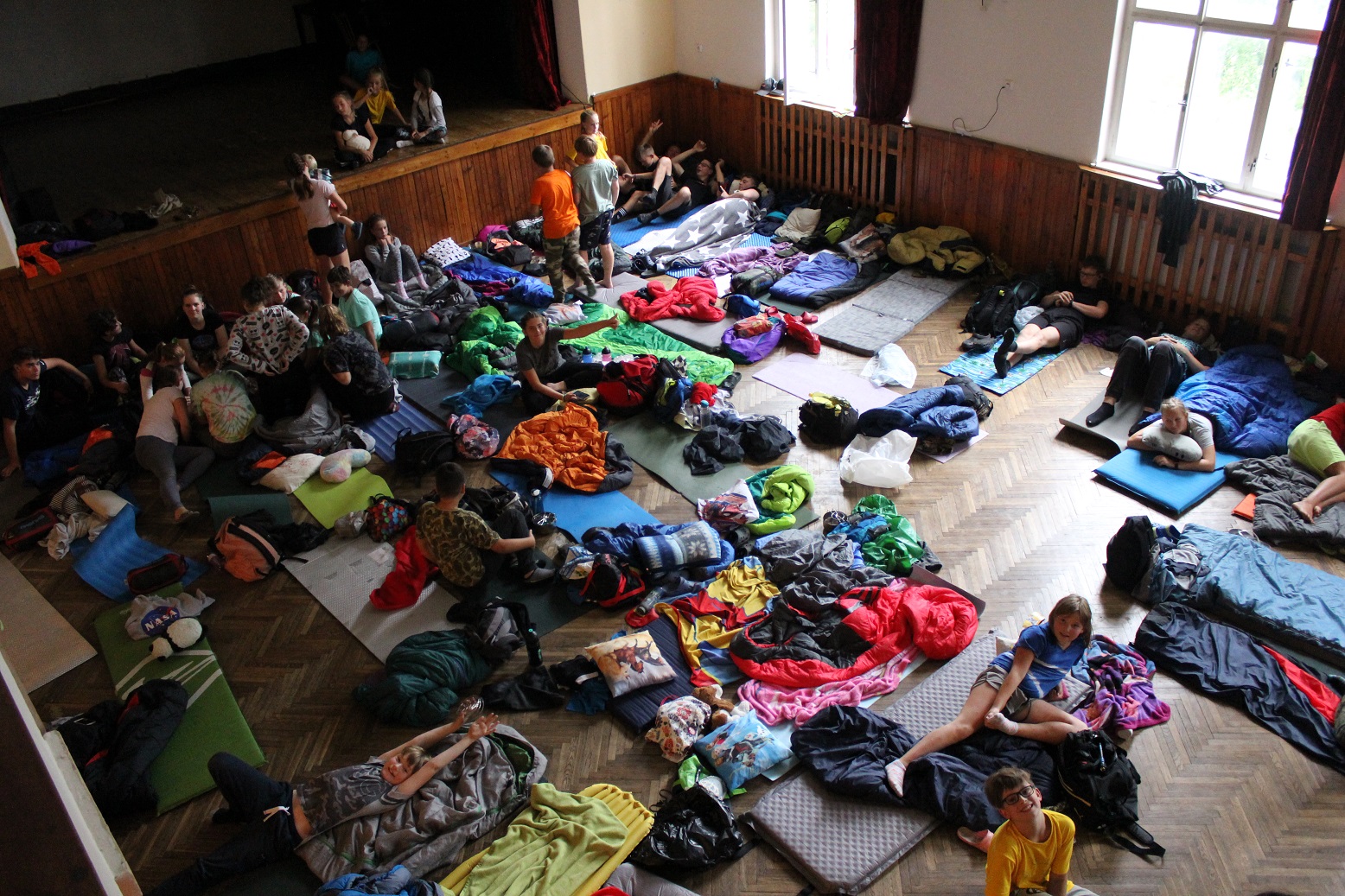 Odpoledne jsme radši sbalili nejnutnější věci a na noc se přesunuli do místního kulturního domu. Nálada panovala výborná. Spaní v kulturáku totiž ještě nikdo z nás nezažil.