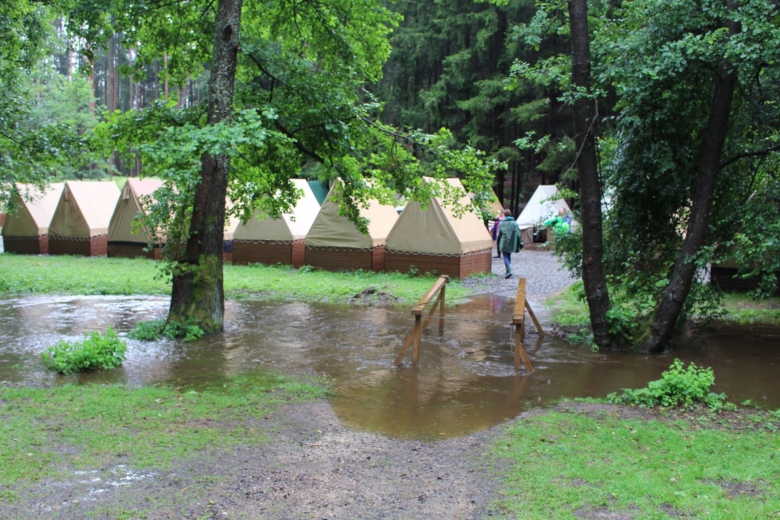 Dochází palivo a tak jsme neplánovaně přistáli na Apokalyptické planetě. Pršelo a pršelo. Dopoledne jsme zkoukli film a pozorovali, jak stoupá voda v místním potůčku.