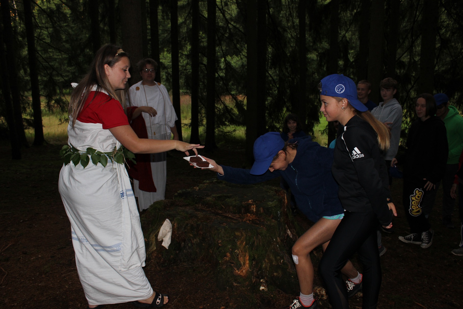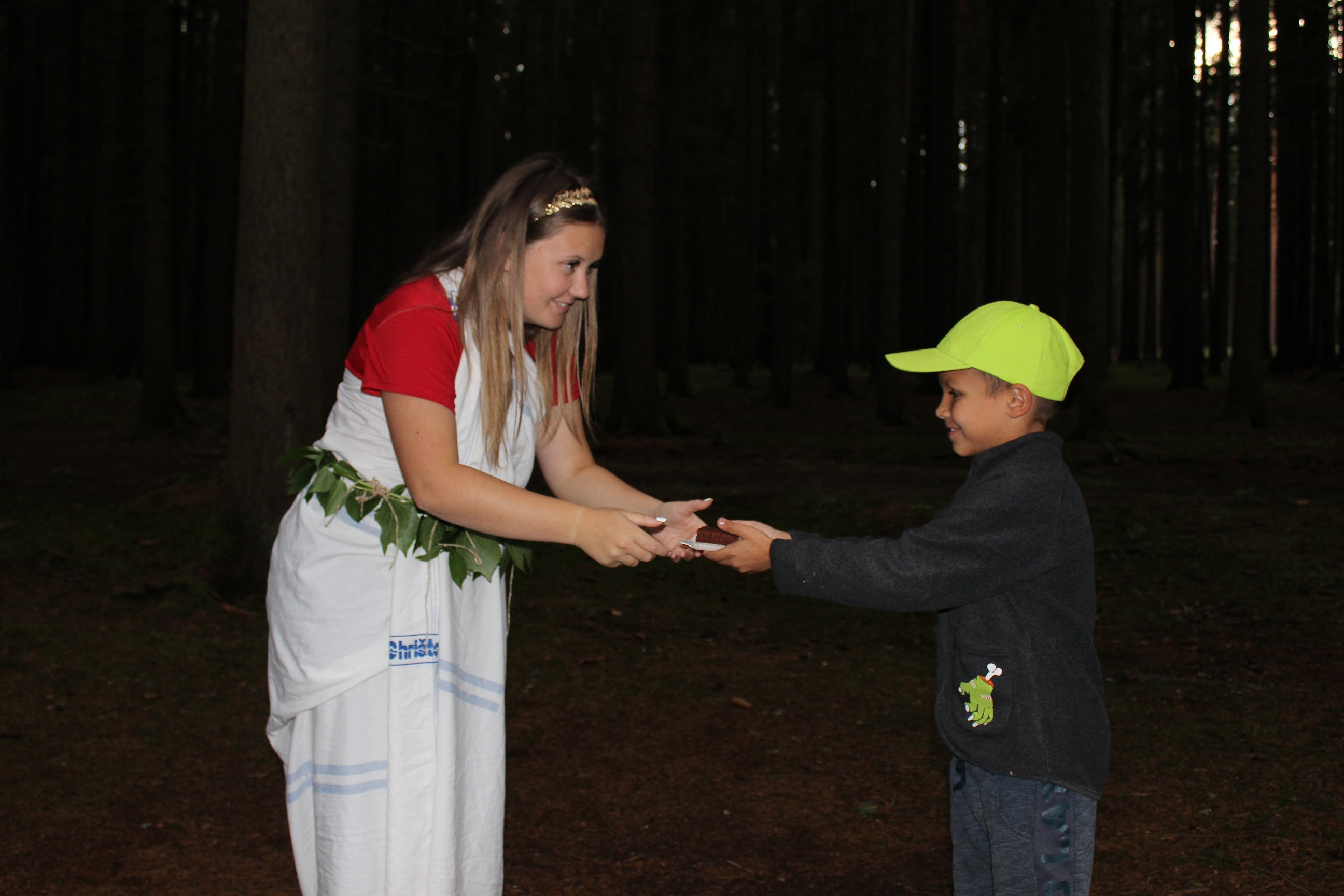 Program: Ráno jsme využili deštivého počasí a vydali se vodní stezkou k Poseidonovi. Ten nám pak napověděl, kterým směrem se vydat za Orákulem. Čekala nás dlouhá cesta, během které jsme sbírali jednotlivé suroviny na přípravu oběti, která byla potřeba pro to, aby nám Orákulum předalo věštbu. Ta zněla: "Kde najdete blesk se dozvíte za ranního kuropění." Večer jsme si dokončili softballový turnaj a zazpívali si u táborového ohně.