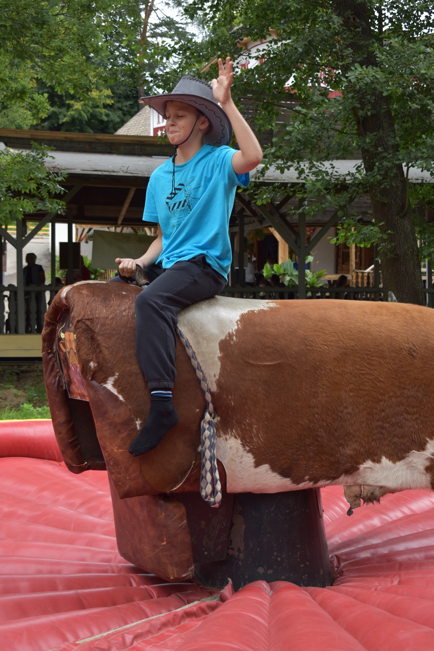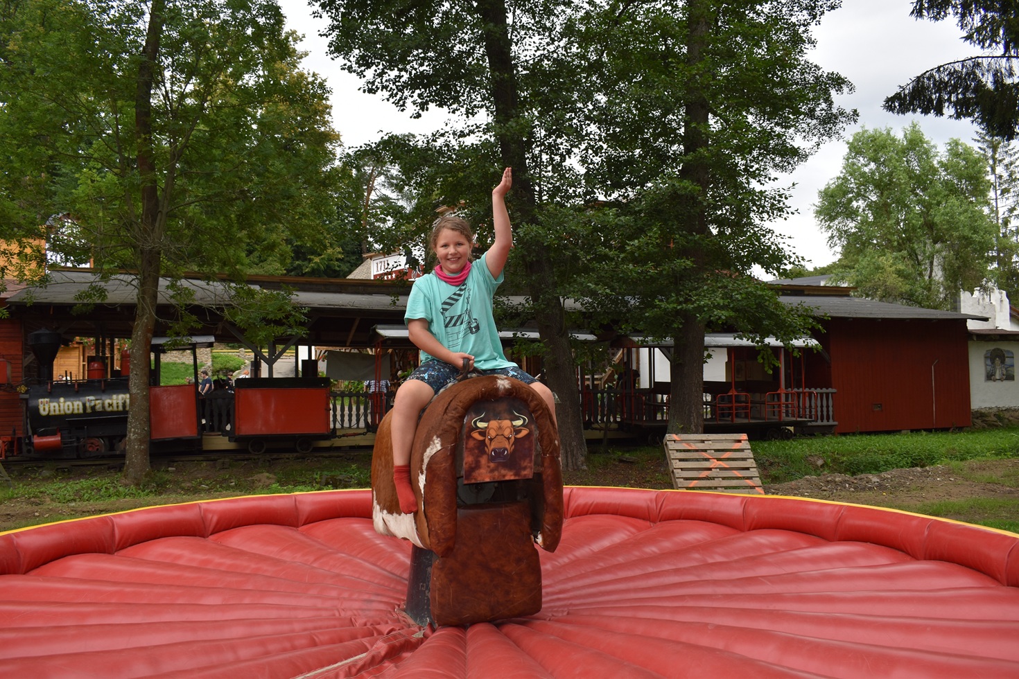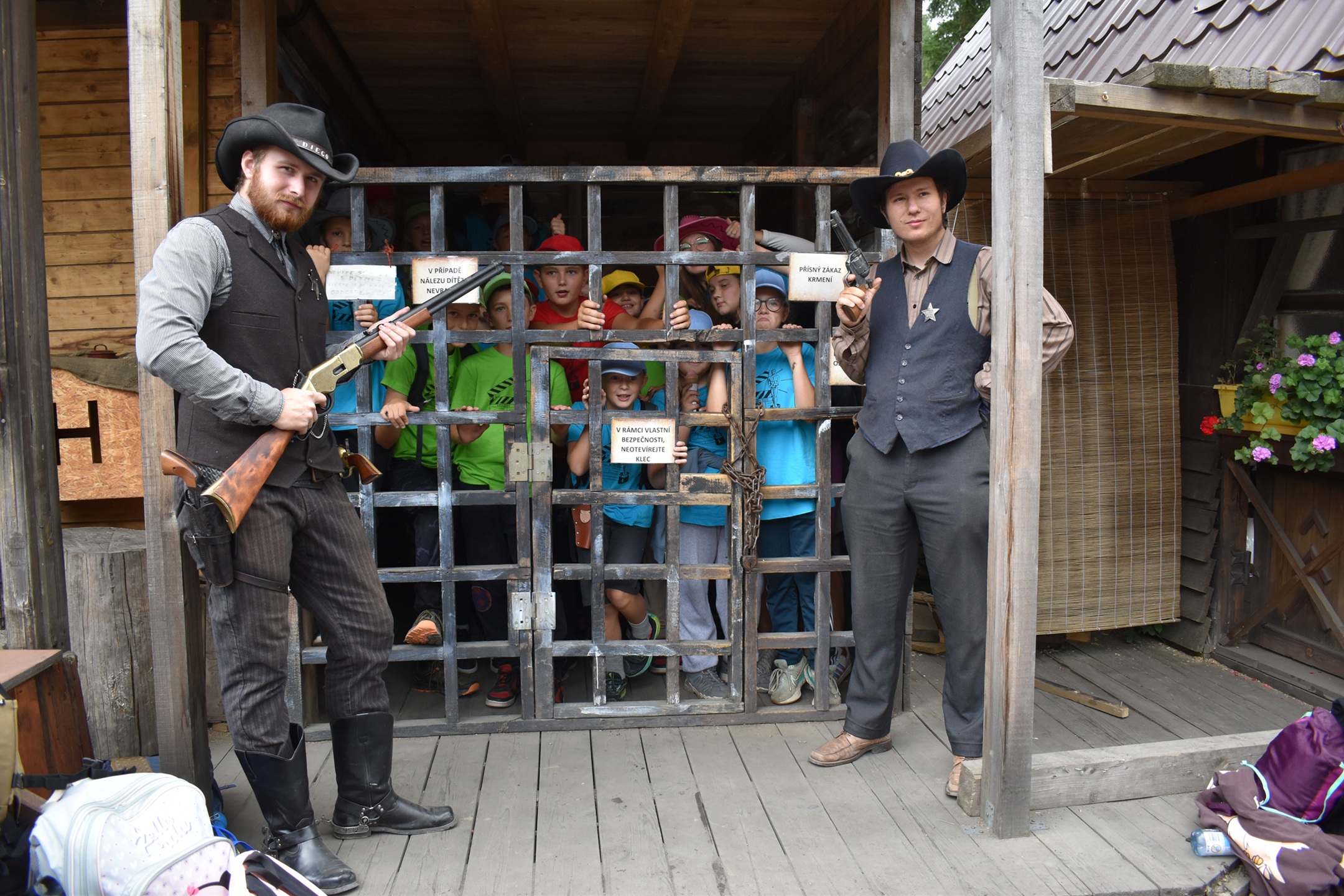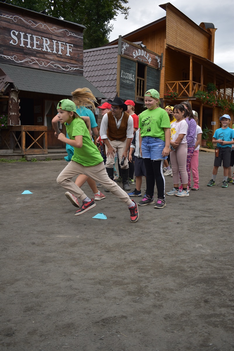 Program: Probudili jsme se do slunečného rána, prostě den jako malovaný na pořádnou výpravu na Divoký západ. Sbalili jsme si pár svých věcí a svačinu do batůžku a vyrazili jsme ke kočáru. Šiklův mlýn se jevil jako ideální prostředí pro nastudování toho, jak se tvoří ten pravý westernový trhák. Zde jsme si vyzkoušeli spoustu triků s bičem a pistolemi, jezdili jsme na koních a býcích a zašli si i na pořádné divadlo. Po návratu do tábora jsme pak dokoukali včerejší pohádku.