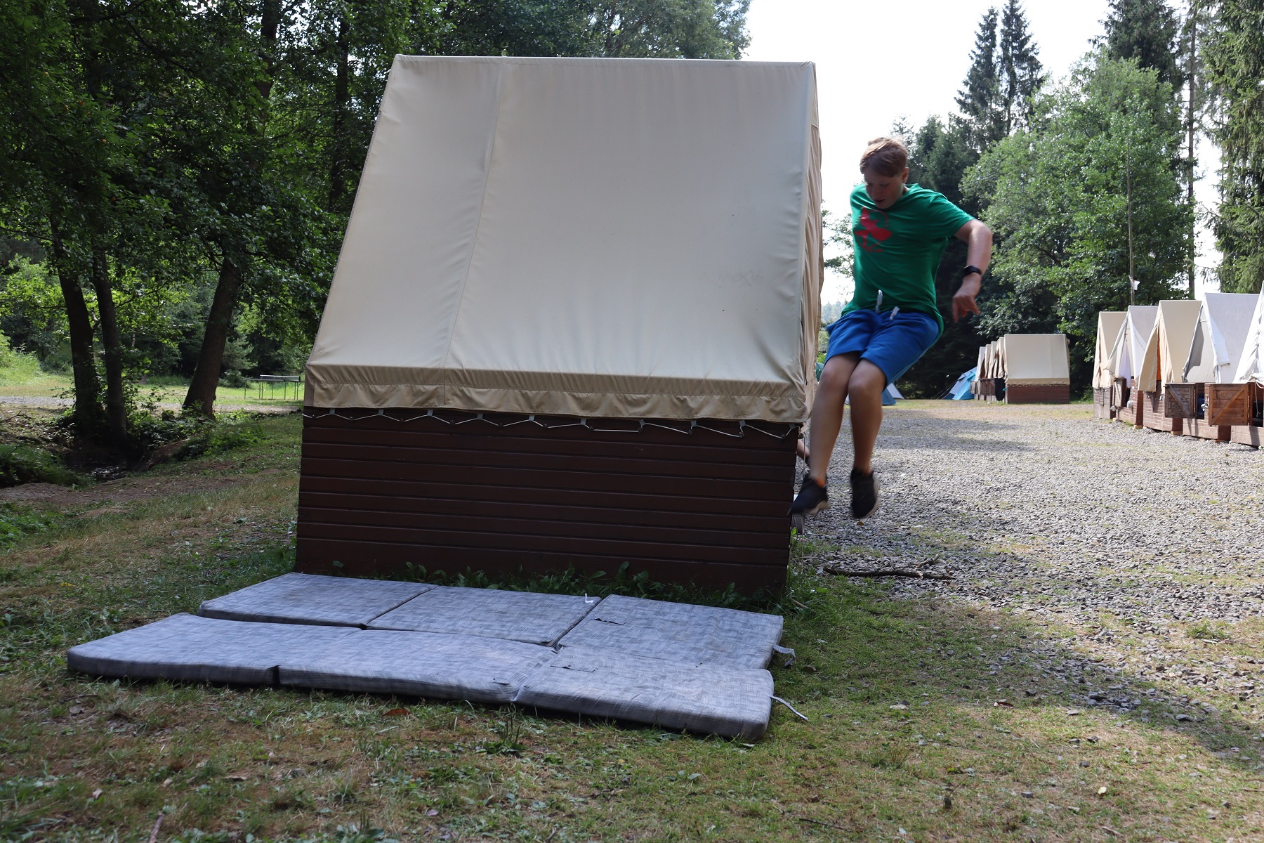 Večer jsme odehráli další dva zápasy v softballovém turnaji a znavení zalehli do stanů a s obavami čekali, co si na nás další den tvůrci her vymyslí.