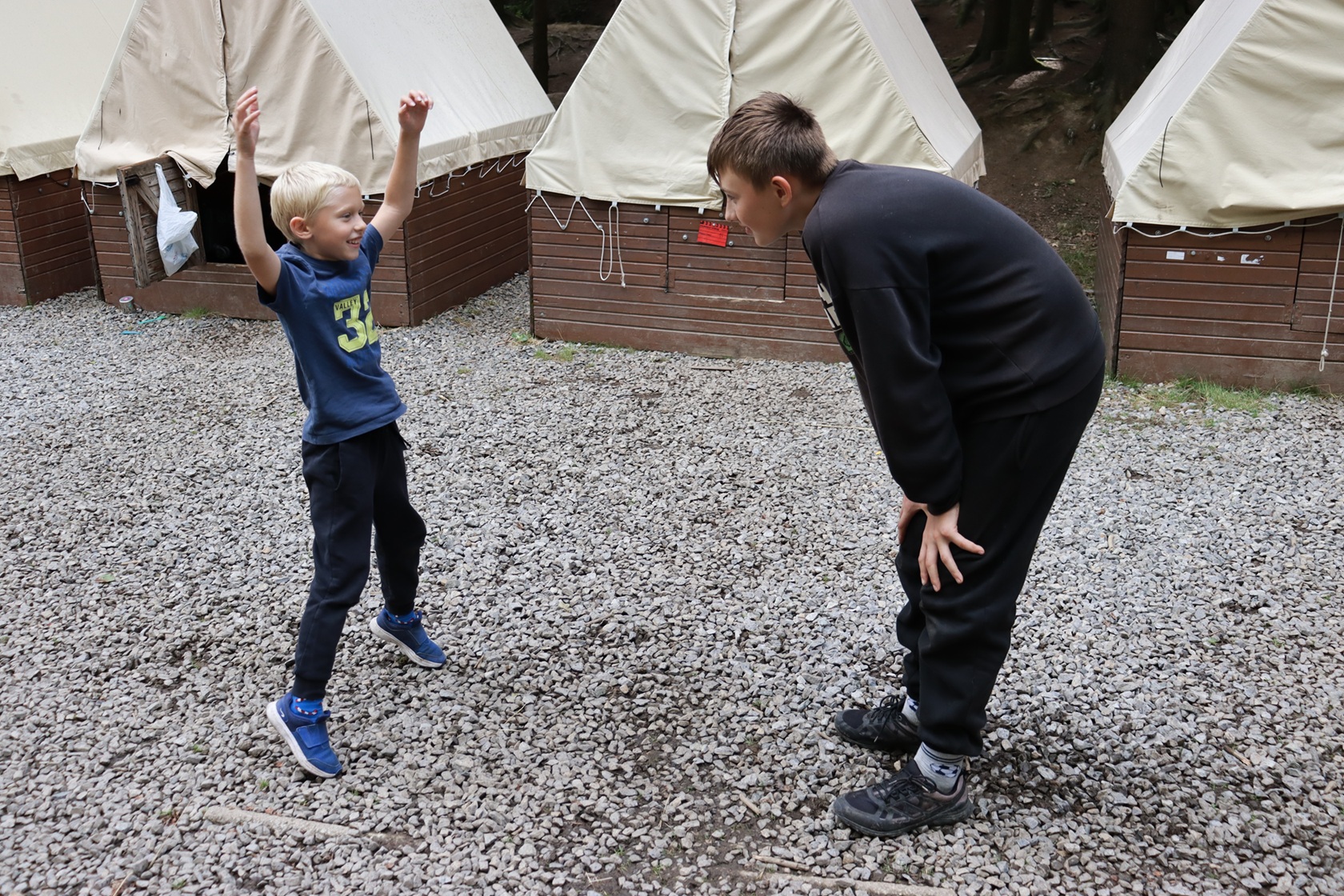 Program: Po včerejším prosluněném westernovém výletu nás dneska čekal pořádný horor! A to doslova. Borywoodská studia nám ukázala to nejhorší, co šlo. Procházeli jsme se po děsivých ateliérech, vyzkoušeli si nejdříve pořádně děsivé aktivity po slepu. Museli jsme třeba ponořit ruce do kýblu hnusu, abychom si vyzkoušeli práci s rekvizitami. Odpoledne nás čekalo doslova děsivé ticho, ale zvládli jsme to. Večer jsme pomocí indícií museli poznat, jaká příšera nás pronásleduje. Den jsme zakončili až po tmě pořádnou stezkou odvahy.