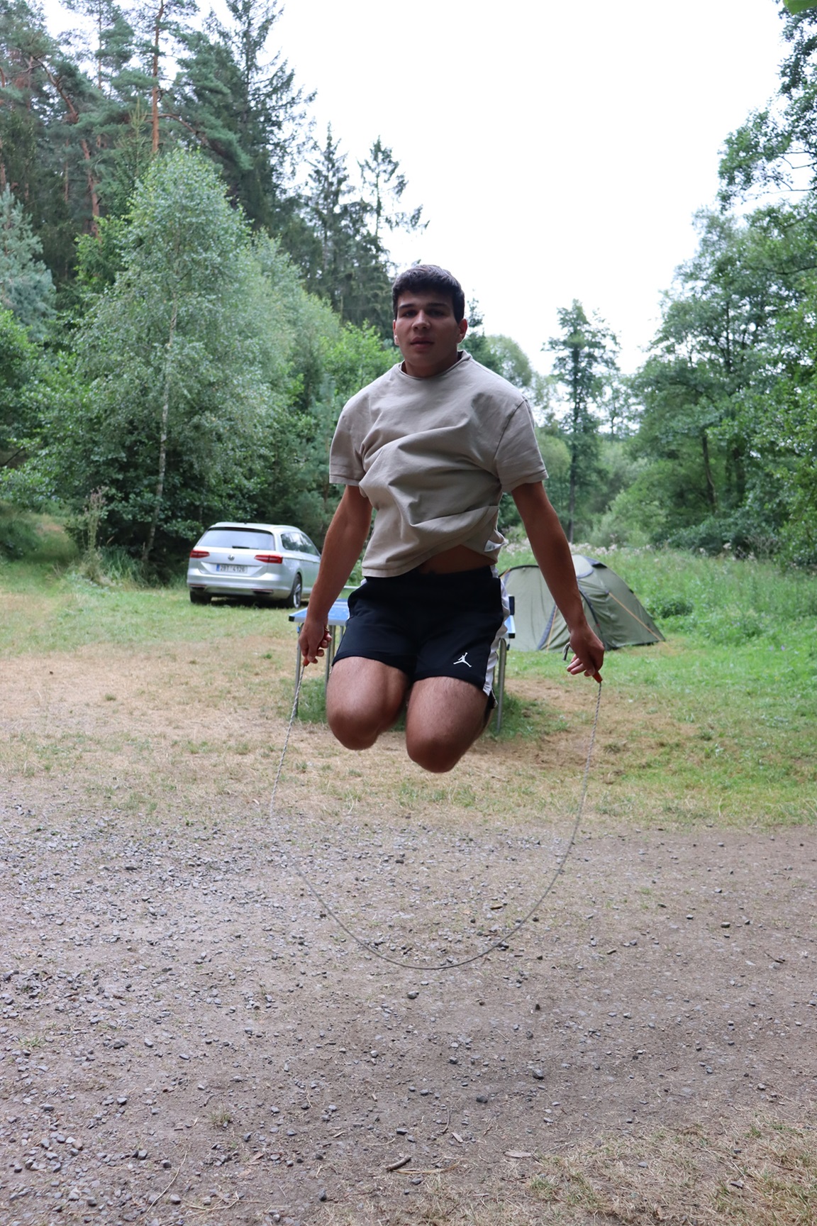 Program: Červencové rčení Svatá Anna, chladna z rána se dnes doslova vyplnilo. Ráno jsme si po včerejší Petropavelské zábavě trochu přispali. Potom nás čekaly letní olympijské hry. Soutěžili jsme v tradičních disciplínách, jako je skok z místa, trojskok, fotbal, gymnastika, ale i fotbal, nebo stolní tenis. Odpoledne jsme vyrazili na tábor. V oddílech jsme se sbalili na tábor, oblékali jsme se na cestu a snažili se udržet táborový oheň a v kotlíku si uvařit polévku. Potom jsme psali dopis z tábora. Večer nás čekal první softballový zápas.