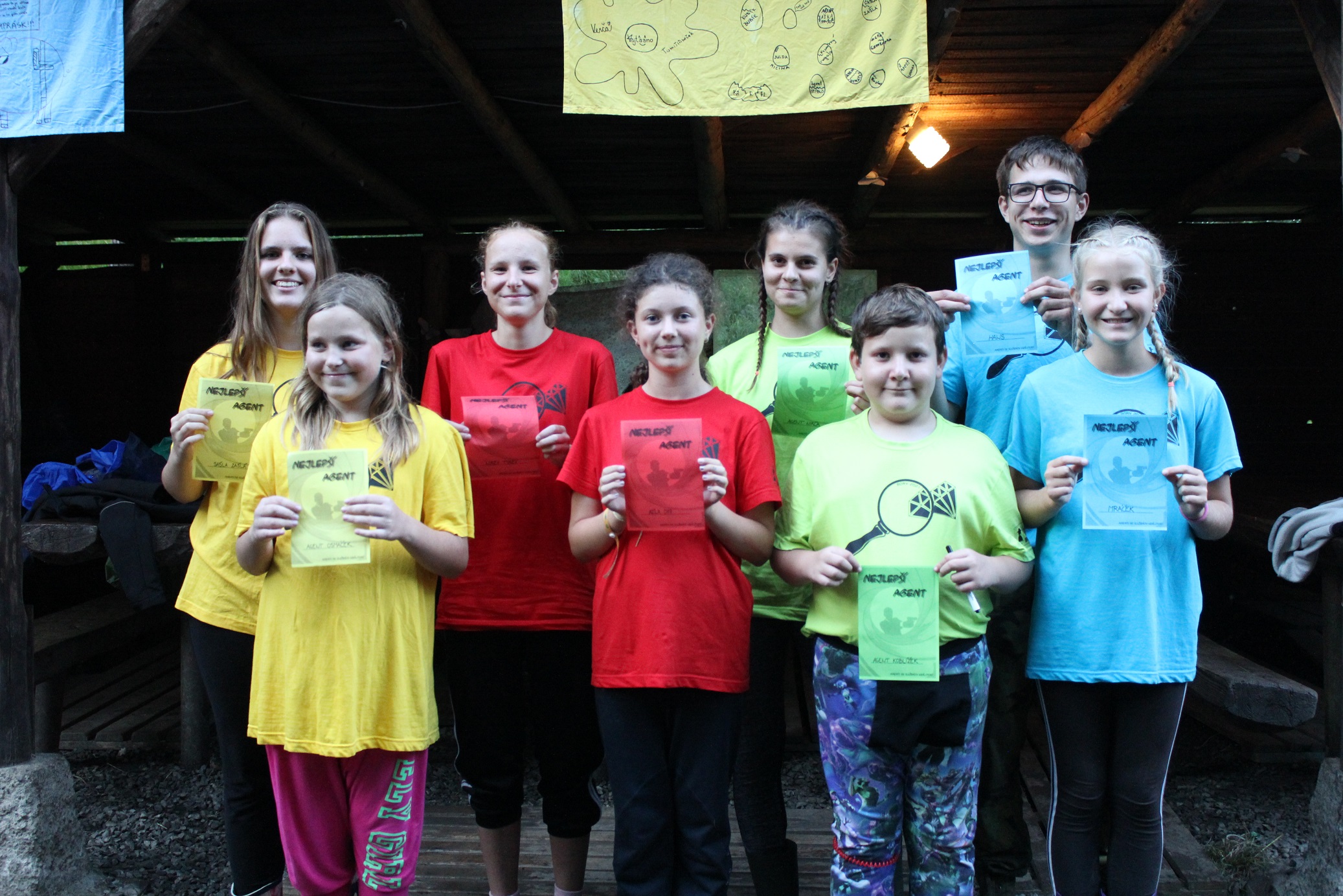 Odpoledne nás pak čekalo rozloučení v oddílech. Hledali jsme poklad, plnili týmové úkoly a nakonec si pochutnali na výborném pohoštění a šampusu.